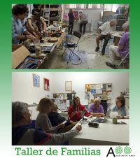 El taller de familias de la sede de Huesca, es un espacio destinado para el respiro familiar, donde realizamos actividades muy variadas. Desde tareas de bricolaje para enmarcar los cuadros del taller de pintura, a actividades más artísticas como la creación de lámparas, asistencia a jornadas técnicas y culturales y sesiones en las que debatimos, compartimos y damos voz a la importancia que precisamente tienen, tanto en la atención a sus familiares como dentro del movimiento asociativo.